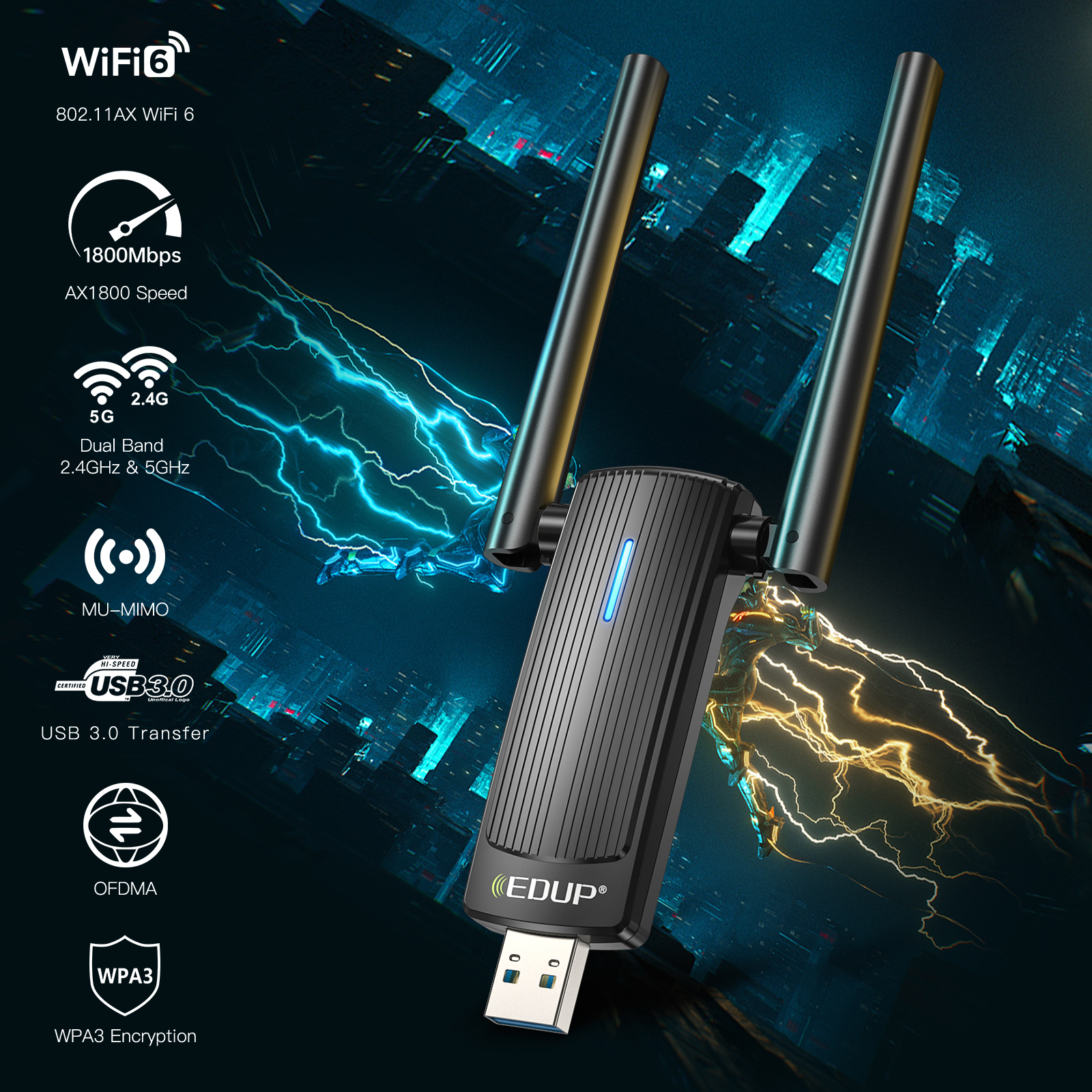 - EDUP EP-AX1696 是一款高性能Wi-Fi 6 USB無線網(wǎng)卡