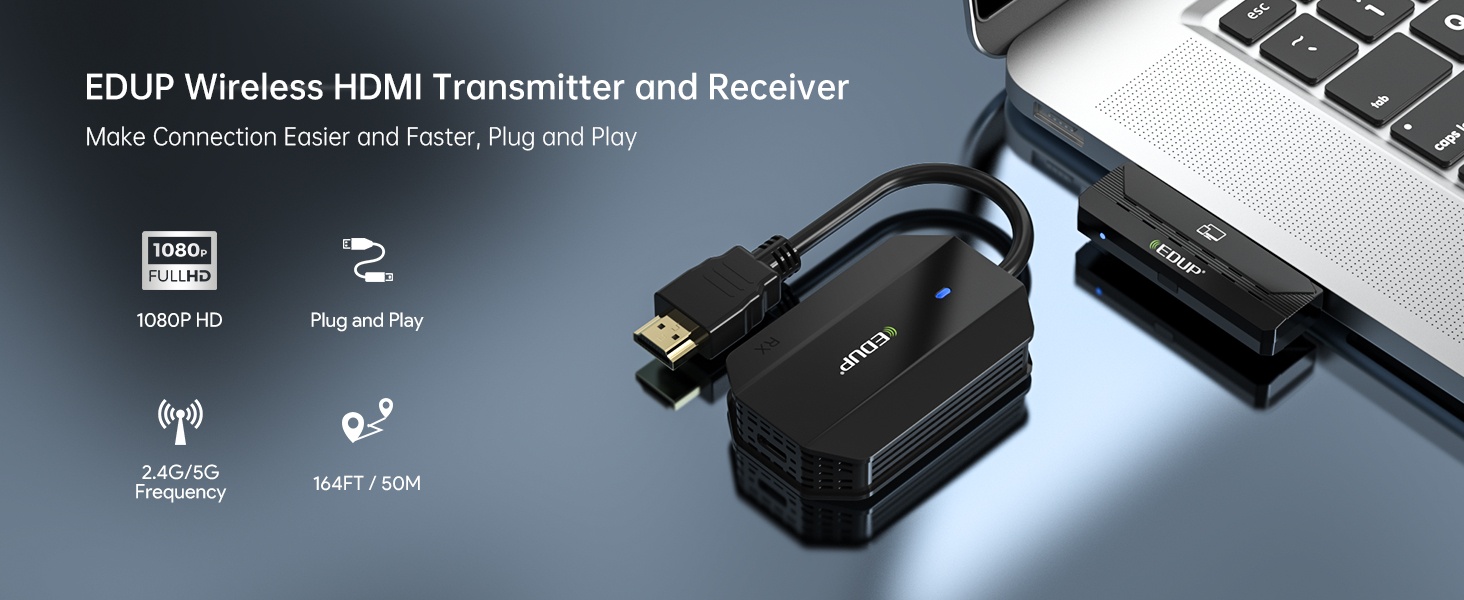 - 即插即用:連接發(fā)射端(TX)和接收端(RX),自動(dòng)配對(duì),無需驅(qū)動(dòng)程序,無需 HDMI 線纜。