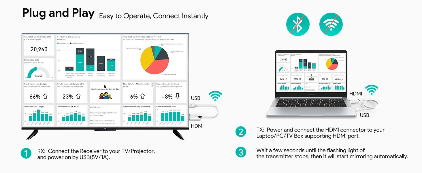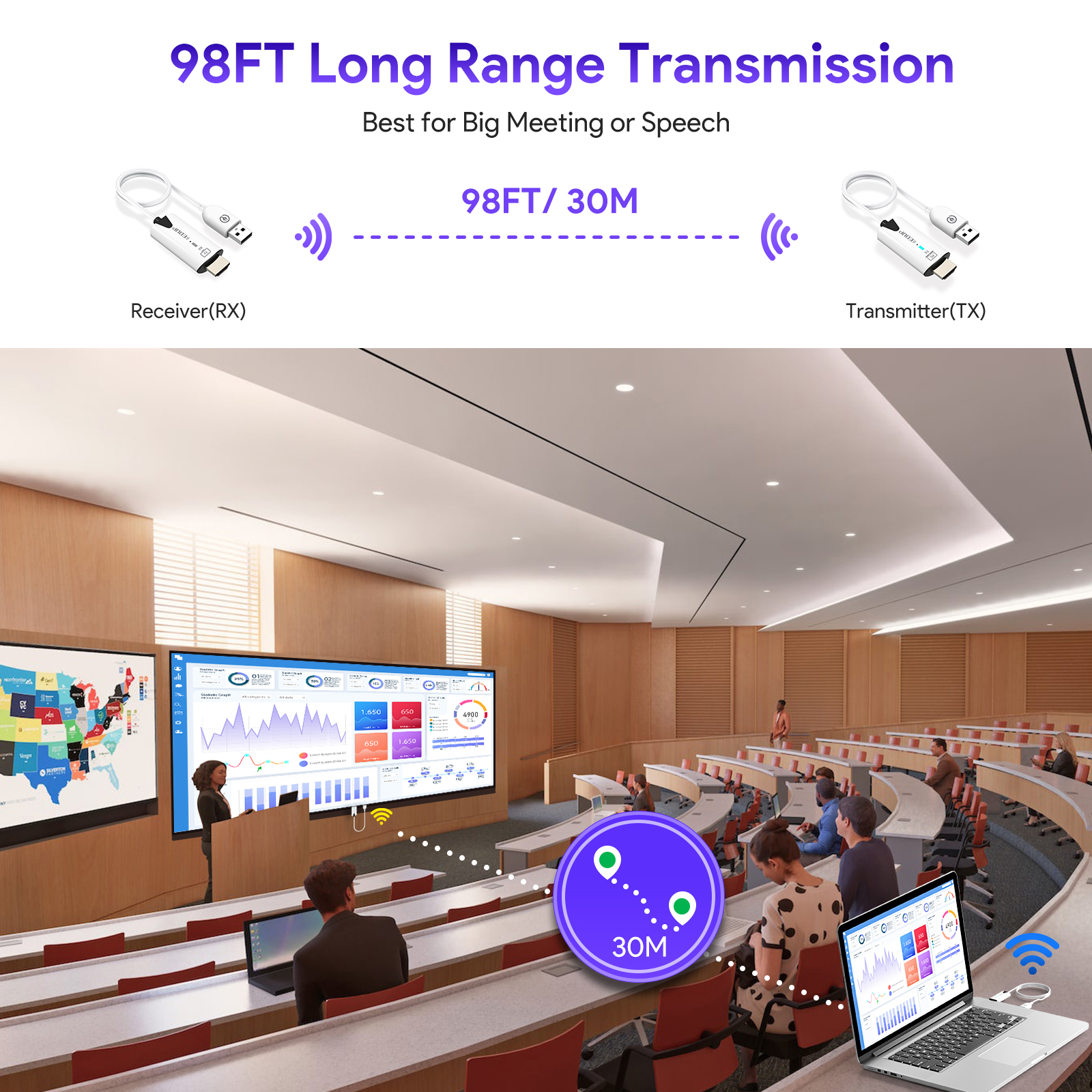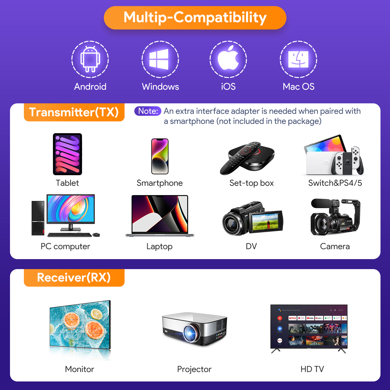 - 本款 HDMI 無線擴展器提供兩種實用模式:鏡像模式和擴展模式。鏡像模式下,源設(shè)備的音視頻內(nèi)容將完整復(fù)制到目標屏幕;擴展模式則能拓展工作區(qū),使雙屏顯示不同內(nèi)容,大幅提升效率,助力流暢多任務(wù)處理。