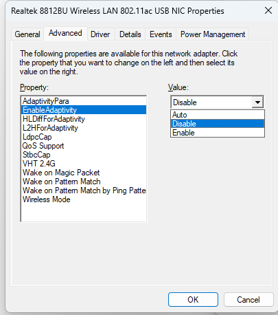 3. 屬性頁單擊“高級”,左側(cè)屬性欄找到“EnableAdaptivity”的選項,右側(cè)值改為“Disable”,單擊確定。