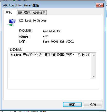 情況2:顯示“Windows無法初始化這個硬件的設(shè)備驅(qū)動程序。(代碼37)”