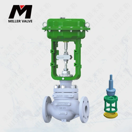 美國米勒氣動薄膜調(diào)節(jié)閥是以壓縮空氣為動力源,以薄膜式氣缸為執(zhí)行器,并借助于電氣閥門定位器、轉(zhuǎn)換器電磁閥、保位閥等附件去驅(qū)動閥門,實現(xiàn)開關(guān)量或比例式調(diào)節(jié),接收工業(yè)自動化控制系統(tǒng)的控制信號來完成調(diào)節(jié)管道介質(zhì)的:流量、壓力、溫度等各種工藝參數(shù)。氣動調(diào)節(jié)閥的特點就是控制簡單,反應(yīng)快速,且本質(zhì)安全,不需另外再采取防爆措施。
