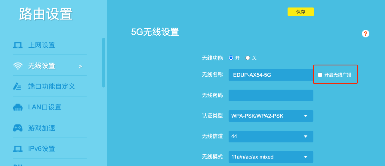 更進(jìn)一步的操作,當(dāng)然是把我們的無線網(wǎng)絡(luò)隱藏掉了,這樣做的好處是,正常情況下別人看不到我們的網(wǎng)絡(luò)名字,這樣能夠有效降低被別人盜連的機(jī)率。雖然這么說,但是也有軟件可以輕松查看隱藏網(wǎng)絡(luò)的哈,不能掉以輕心。