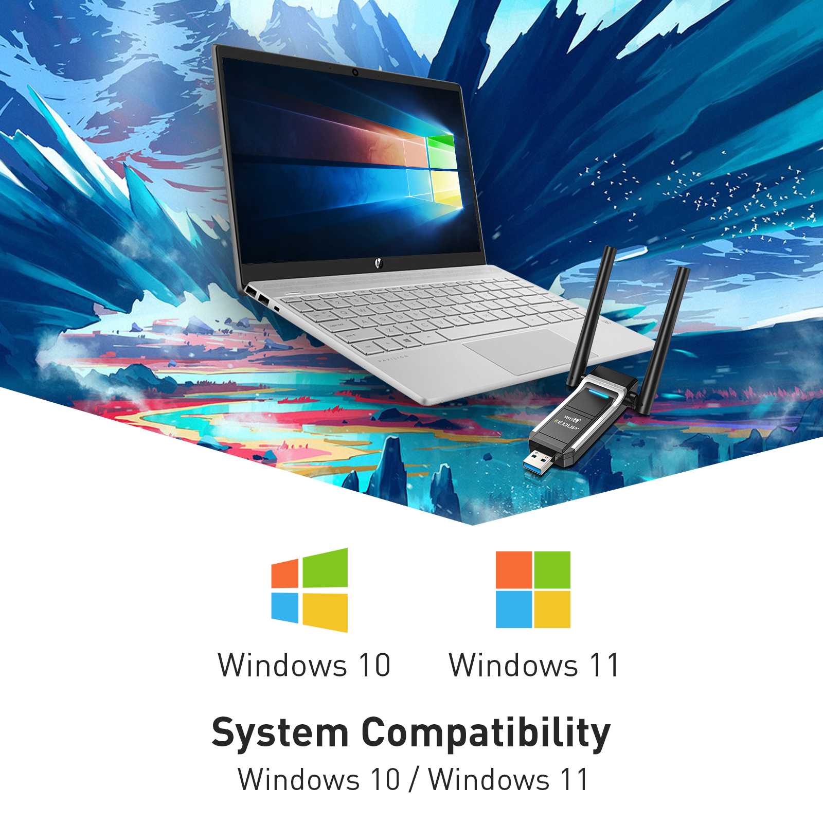 - 適配器技術(shù):EDUP USB Wi-Fi 6 適配器采用 802.11ax 標(biāo)準(zhǔn),專為PC設(shè)計。