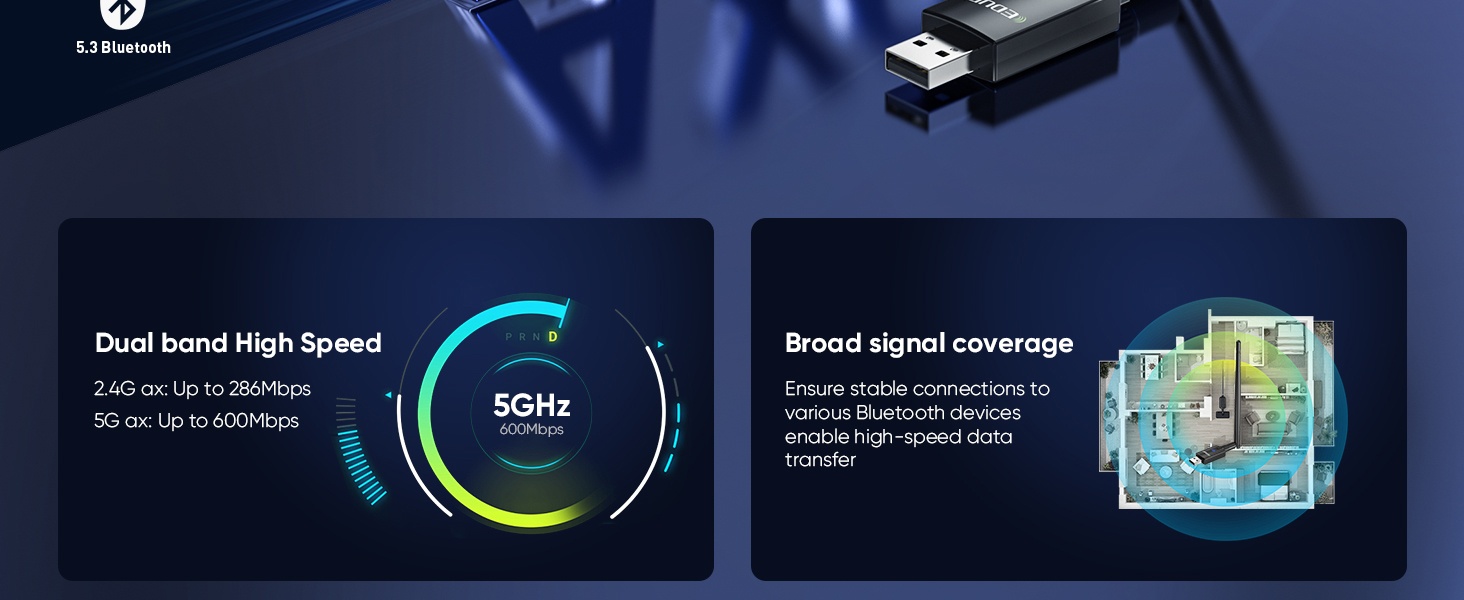 - 傳輸速率:最高900Mbps(2.4GHz頻段286Mbps+5GHz頻段600Mbps)